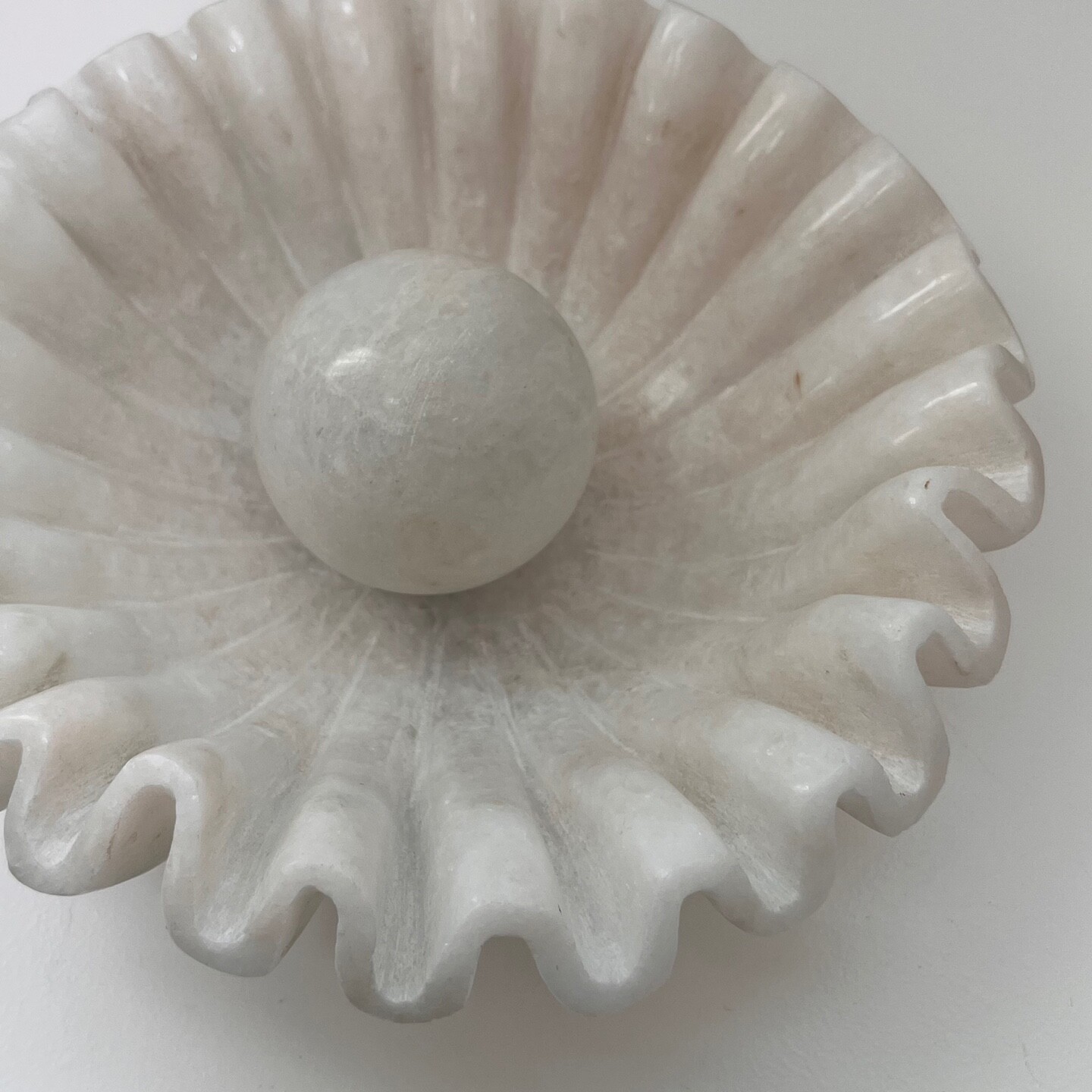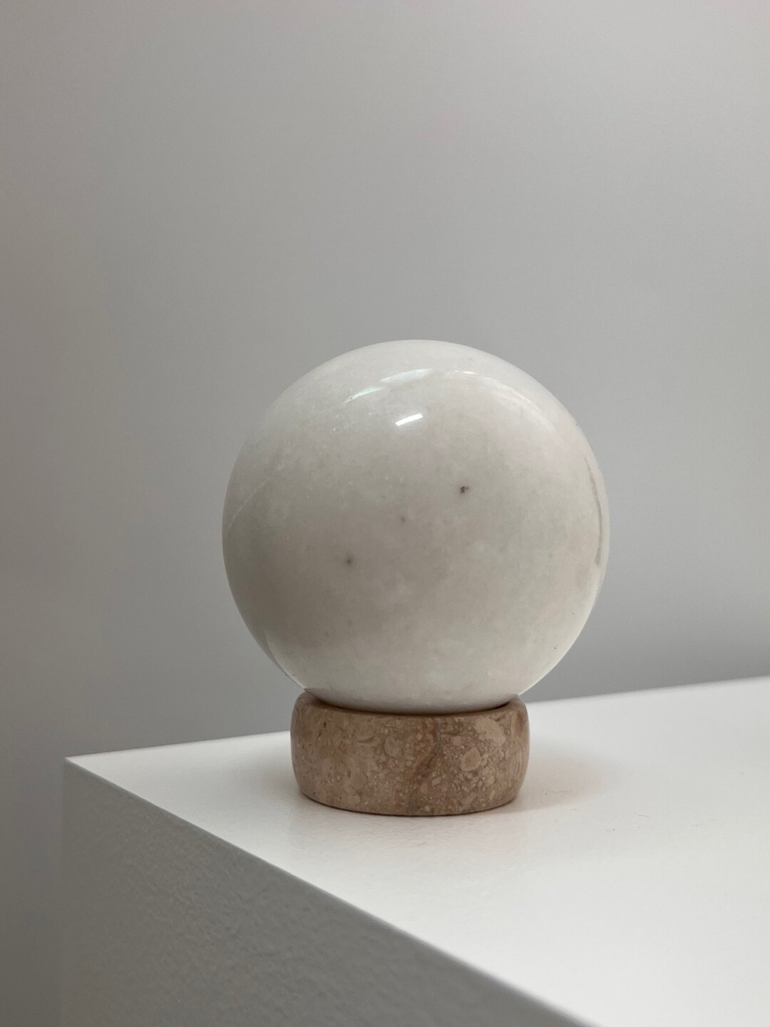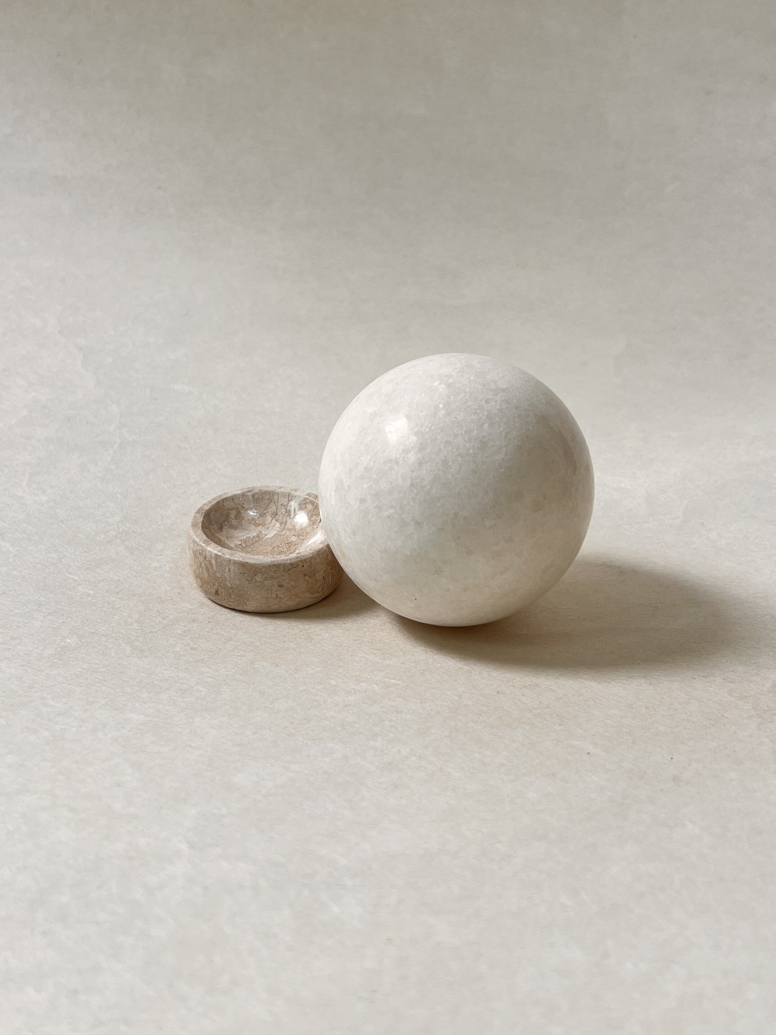 섬세하게 세공된 스피어 형태의 오브제입니다. 무게감있는 스피어를 손으로 조각한 배색 스탠드에 올려서 연출 할 수 있습니다. 천연 대리석만의 오묘한 결정, 비정형적 패턴들이 아름답게 표현되어 공간에 예술적 무드를 더해줍니다.